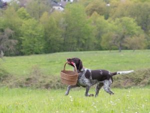In Herrn Bertram fand ich nicht nur einen Züchter mit Herzblut, sondern auch einen erfahrenen Jagdhunde-Ausbilder, der mir ausführlich die Eigenschaften des Deutsch Stichelhaar beschrieb und mich einlud, mir die Welpen anzuschauen. Er sei überzeugt, dass seine Hunde für die von mir beschriebene Arbeit absolut geeignet seien. Drei Wochen später war ich zu Besuch in Sachsen-Anhalt. Im Laufe des Nachmittags lernte ich viel über die Rasse und auch die Hunde kenne. Was soll ich sagen: Das Wesen der Hündin „Doro von der Gundelrebe“ hat mich sofort überzeugt. Einer der Welpen nahm intensiven Kontakt zu mir auf. Nach einigen Stunden verließ ich Familie Bertram mit der Gewissheit, dass diese Rasse für mich und für meine Arbeit passt. Da ich am Rande des schönen Siebengebirges zwischen Köln/Bonn und Koblenz, also in NRW sesshaft bin, habe ich zwei Ortschaften weiter übernachtet. Kurz entschlossen bin ich am nächsten Morgen wieder bei Familie Henning eingekehrt und habe „mein“ fünf Monate altes Deutsch Stichelhaar abgeholt, nämlich eben diesen Welpen, der sich bereits für mich entschieden hatte und auch an diesem Morgen bei seiner Entscheidung blieb.