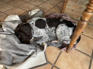 Nachdem ich die Eigenschaften immer und immer wieder durchgelesen habe, war mir klar, dass ich möglicherweise nach einem Vorstehhund suche. Also habe ich mir die verschiedenen Rassen angeschaut und bin rein zufällig auf den „Deutsch Stichelhaar“ gestoßen, der den Beschreibungen nach meinen Ansprüchen gerecht werden sollte. Also Züchter gesucht. Gibt es nicht viele. Aber offensichtlich sollte ich Glück haben: Es standen noch drei Welpen zur Abgabe bei Henning Bertram (06456 Arnstein) in Sachsen-Anhalt.